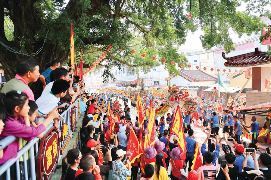 當日巡游的規(guī)模宏大,來自8個村的巡游隊伍綿延數(shù)公里,在平海圩鎮(zhèn)、平海古城的大街小巷中穿梭,吸引了眾多游客參與和觀看。