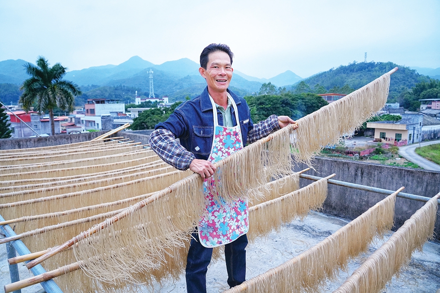 仲冬時節,村民們忙著采收番薯,并將收回來的番薯制成薯粉絲。經過沖洗、碾磨、揉粉、沉淀、蒸熟、切割、晾曬等10多道工序后,番薯被制成薯粉絲,成為家家戶戶春節年貨必備之品。