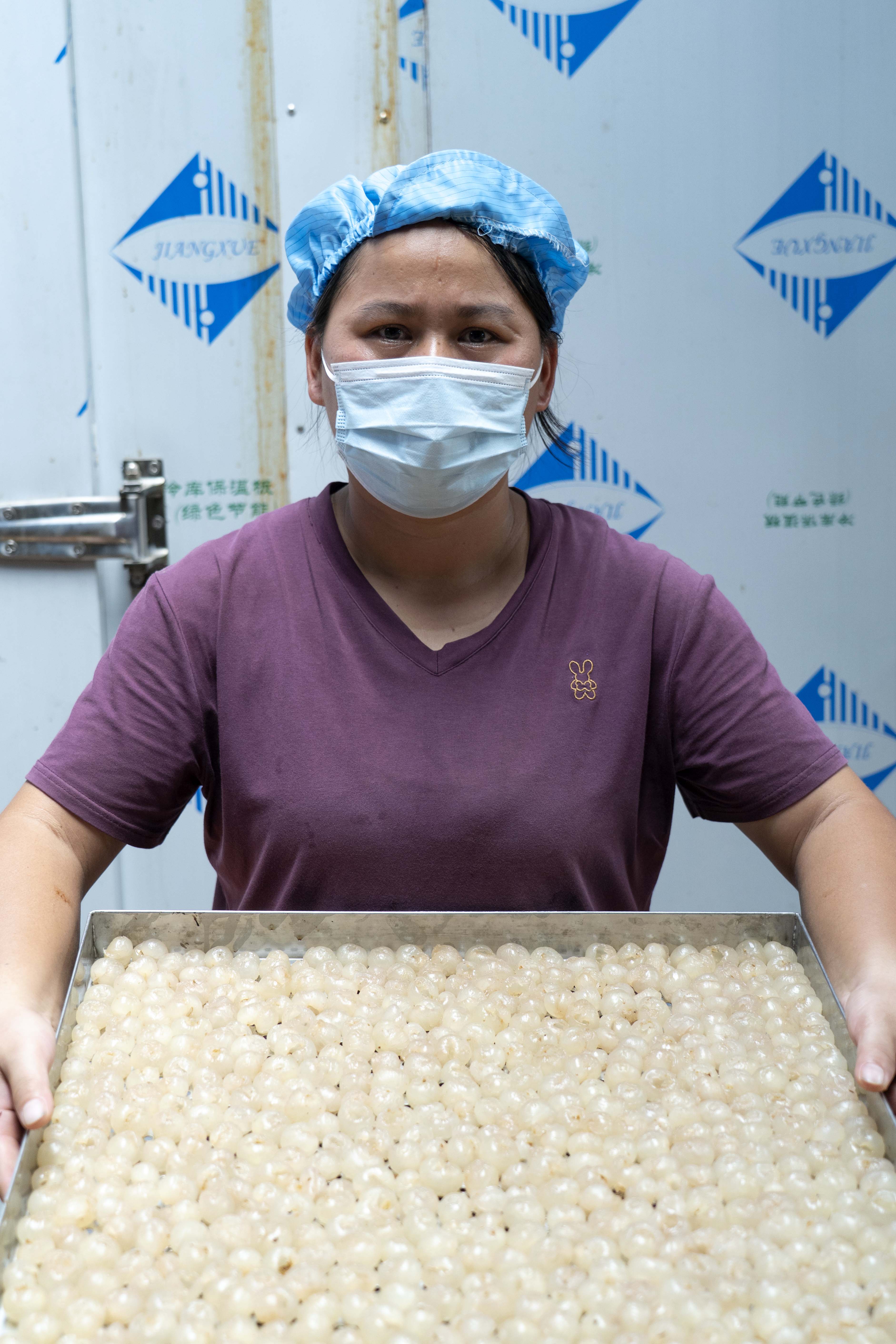 烘干 剝好的龍眼肉放進托盤準備烘干。