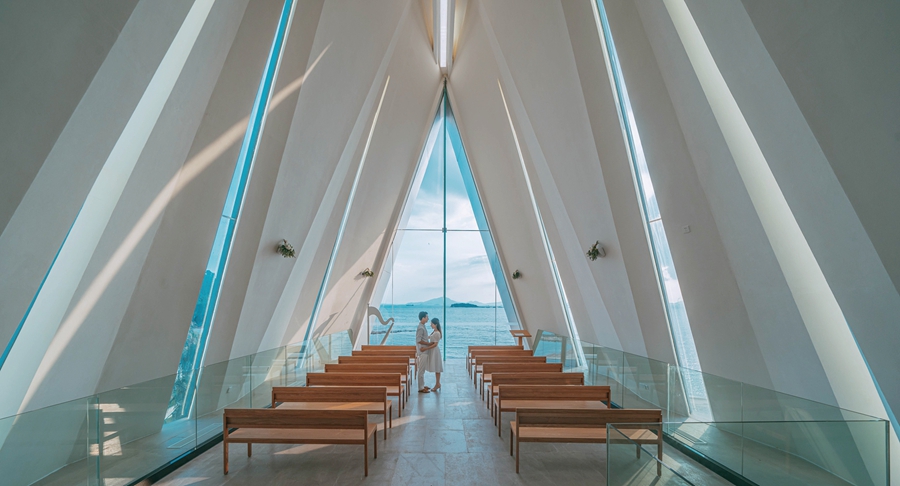 禮堂矗立在海岸之上,是網紅達人追捧的旅行打卡地標。